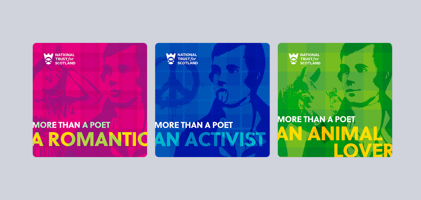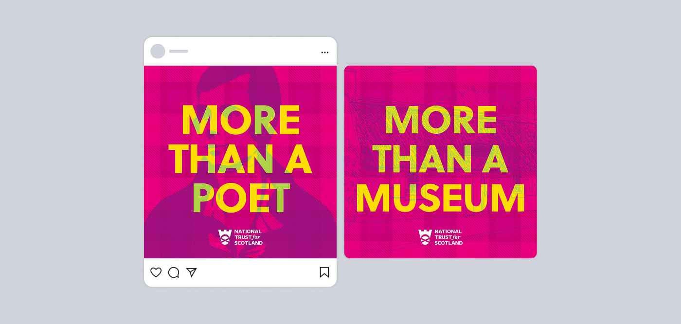 The concept “More than a poet, more than a museum” reframed Burns’ legacy in a fresh, engaging way. The campaign included a bright, playful animation supported by a set of static posts, a carousel and a poster, all designed to engage a younger audience on social media.
